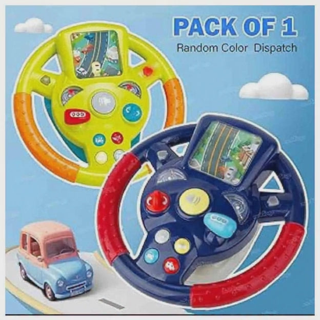 A fun & exciting driving role-play toy for kids. This electronic steering wheel has buttons for horn, music & sound effects and a small moving road screen to give a real driving feeling. Kids can pretend they are driving a real car and enjoy hours of playful learning. Helps in hand-eye co-ordination, imagination & motor skills. Random colour will be sent (pack of 1).